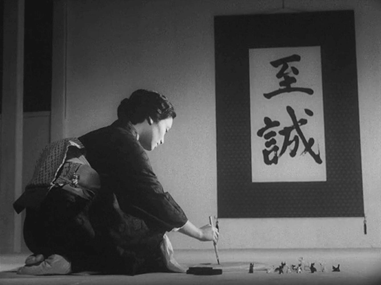 The movie starts with a bit of expository backstory scrawled across scrolls that move along the screen. Shinji Takeyama and his friends had attempted a coup, but it did not go as planned and Shinji is condemned to take his friends lives. He cannot bring himself to slay his friends and in a final attempt to maintain his honor, Shinji decides to commit suicide by the way of harakiri. Before the inevitable suicide there are some intimate scenes with Reiko, Shinji’s wife. Reiko thinks back to better times, when her husband would hold her and caress her face, when life was simpler and they always had each other. This scene is beautiful as the ghostly, superimposed hands of Shinji, caress Reiko, but as the scene continues the hands fade and Reiko seems to be brought back to the grim reality she has to face.
